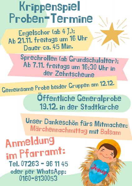 Wir freuen uns auch im Jahr 2025 wieder über Helferinnen und Helfer bei den Proben und über viele begeisterte Krippenspielkinder.