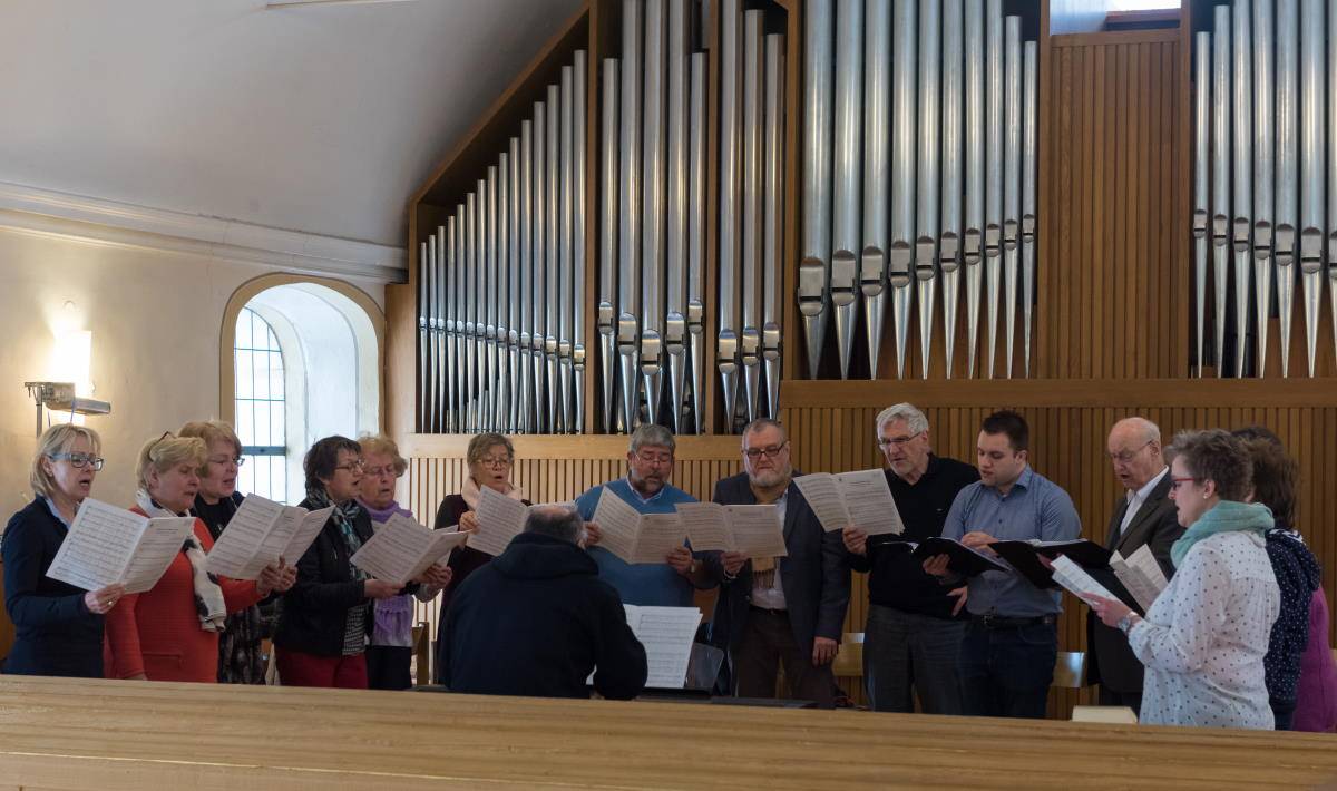 Wir singen und proben bei bester Stimmung und haben viel Freude dabei.
